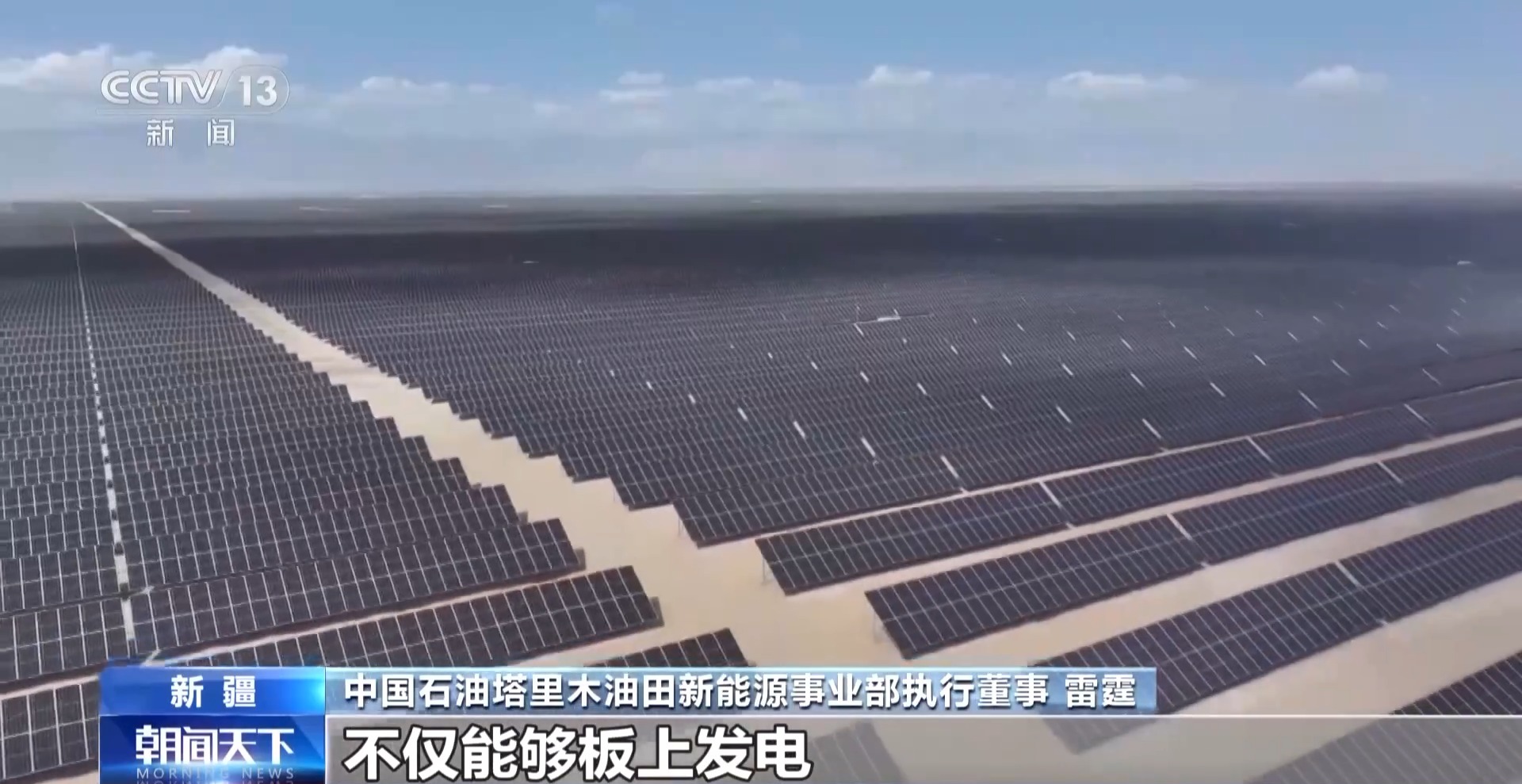 中國石油塔里木油田新能源事業(yè)部經理 梁玉磊:我們的光伏發(fā)電量“三年三跨越”,從2023年的2.6億度到2024年的13.4億度,再到今年突破20億度,實現(xiàn)了從無到有、從小到大的跨越式發(fā)展。