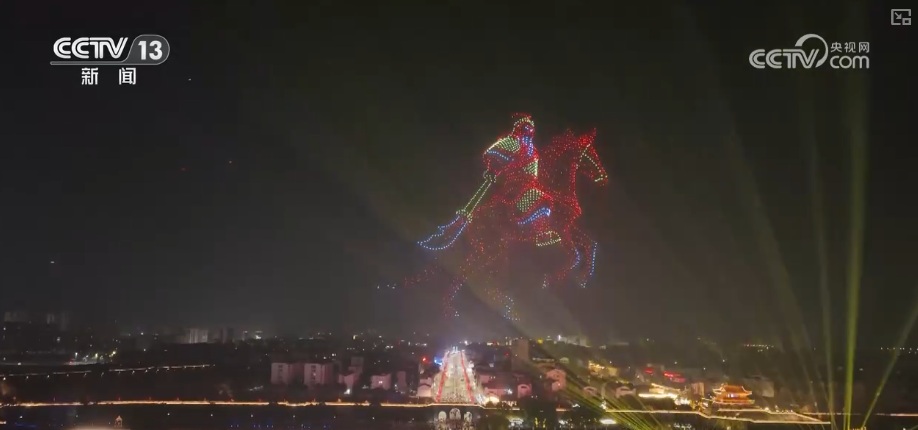 在荊州古城,2026架無人機(jī)翩然升起,以天為幕,勾勒出一幅幅絢麗的光影畫卷。鳳凰展翅,象征楚文化的涅槃與高遠(yuǎn);赤兔騰空,呼應(yīng)關(guān)羽的忠誠與神勇;關(guān)公橫刀立馬的雄姿,在夜空中凝結(jié)為璀璨祝福。整座古城流光溢彩、光影交錯,展現(xiàn)出一幅古今交融的文旅新畫卷。