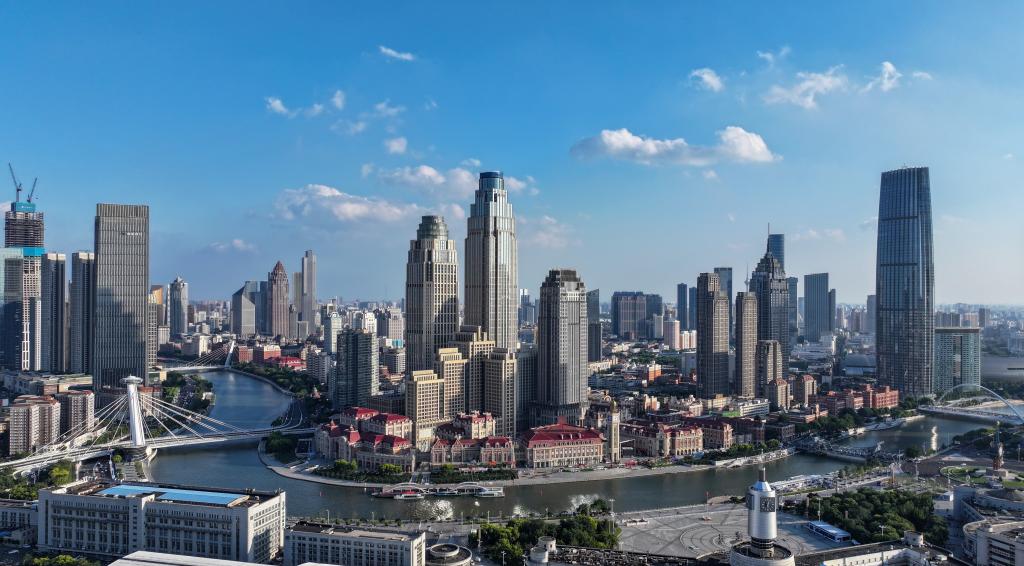 2025年7月16日無人機拍攝的天津海河沿線。新華社記者孫凡越 攝