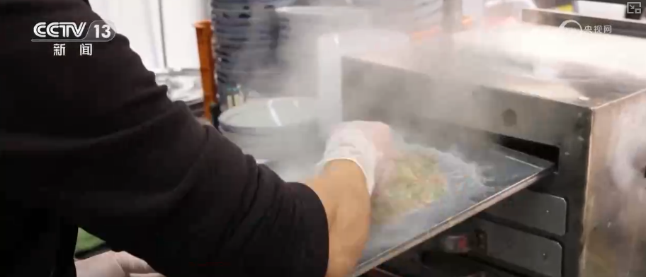 腸粉店老板陳軒豪介紹,米漿里水的比例也很關(guān)鍵,他們會根據(jù)當(dāng)天的天氣進行調(diào)整,比如天氣炎熱潮濕的時候,就需要少放一點水,不然蒸出來口感就會比較軟爛。夏天還會放一些冰,防止米漿變質(zhì)。