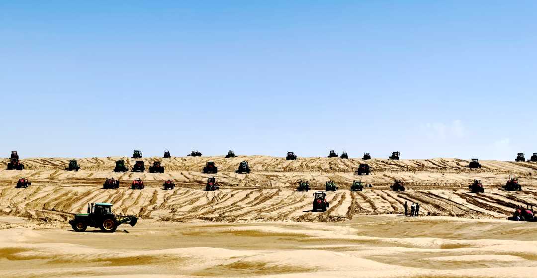 于田縣結(jié)合沙丘地形特點,將20米至40米高的高大沙丘分段平整為“梯田”,在沙丘頂部種植喬灌草,斜坡處鋪設(shè)草方格,沙丘底部栽種梭梭、紅柳、酸棗等固沙植物。該縣創(chuàng)新探索的“梯田治沙”模式,相較以往將沙丘整體平整后再種植防沙作物的方式,成本降低約80%。