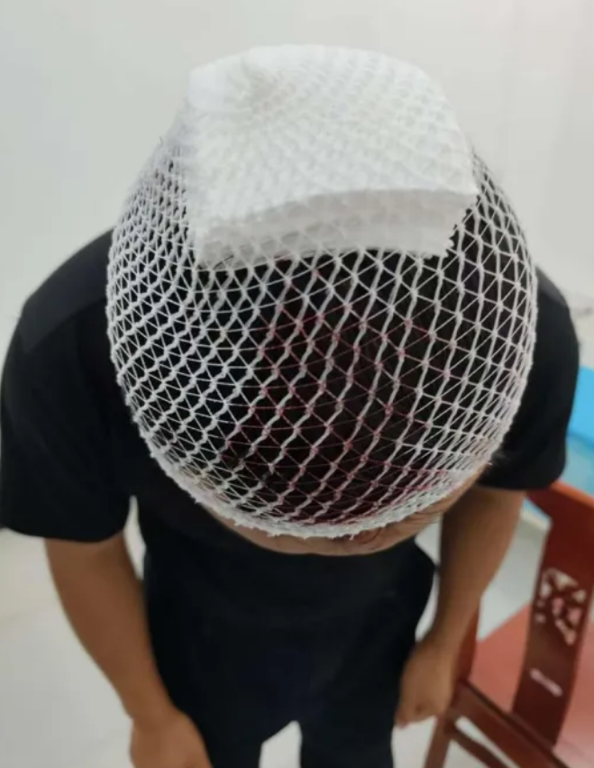 他的頭被包扎了起來(lái)