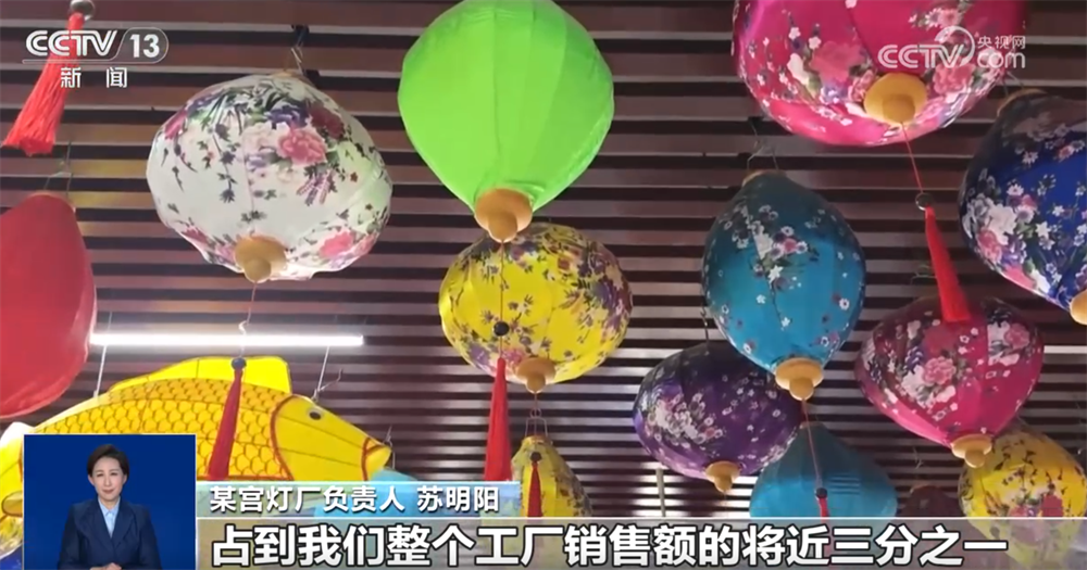 某宮燈廠負責人 蘇明陽:現在一天直播4小時—5小時,到年底我們一天開播將近16個小時。在線上賣,占到我們整個工廠銷售額的將近三分之一。