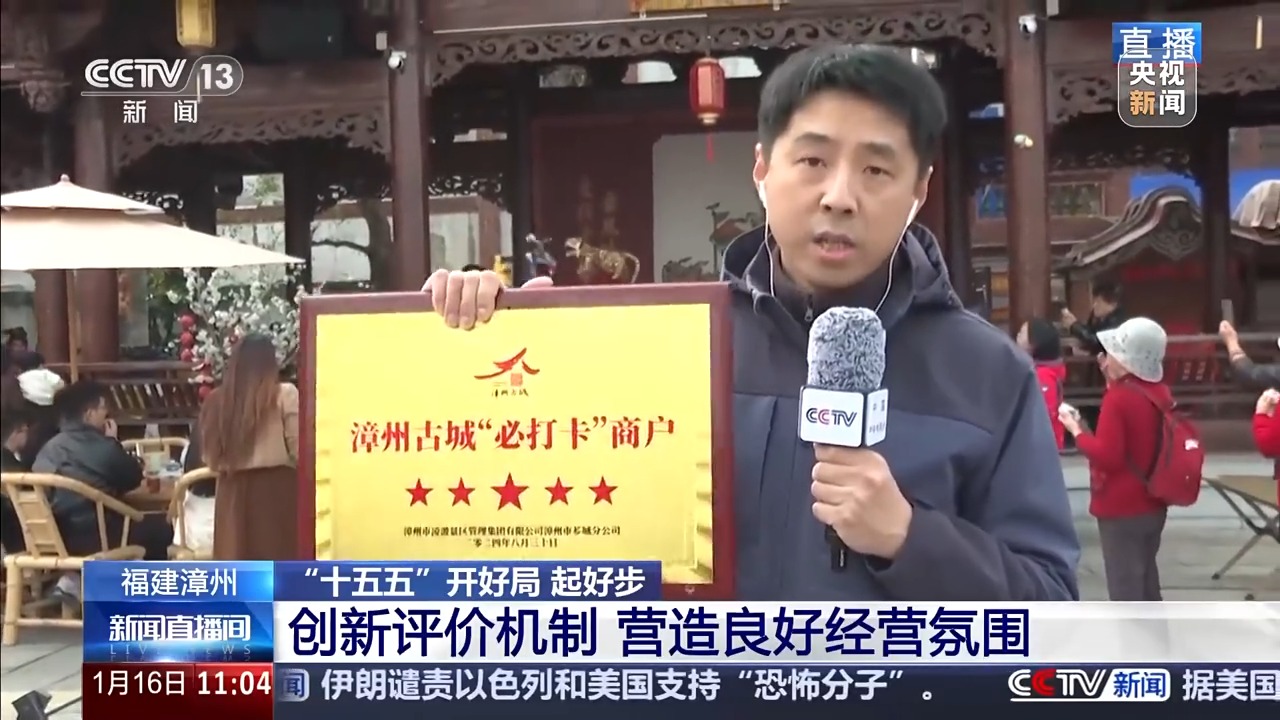 此外,我們還注意到一個(gè)細(xì)節(jié)。這里有一些商家,獲得了這樣一種帶有星級(jí)評(píng)價(jià)的獎(jiǎng)牌。這是漳州古城聯(lián)合了當(dāng)?shù)匚穆?、商?wù)、市場(chǎng)監(jiān)管等部門共同授予。目前,當(dāng)?shù)叵嚓P(guān)部門每?jī)赡甓紩?huì)對(duì)古城內(nèi)的商戶開展文明誠(chéng)信經(jīng)營(yíng)示范評(píng)選,經(jīng)過線上投票、現(xiàn)場(chǎng)考察、線下評(píng)分等環(huán)節(jié),上榜單位將得到漳州當(dāng)?shù)赜杏绊懥Φ墓娞?hào)、視頻號(hào)等的推廣支持,不僅讓精品商鋪能夠出圈,提升古城的游客流量,也激勵(lì)其他商戶,來共同營(yíng)造良好的經(jīng)營(yíng)氛圍。