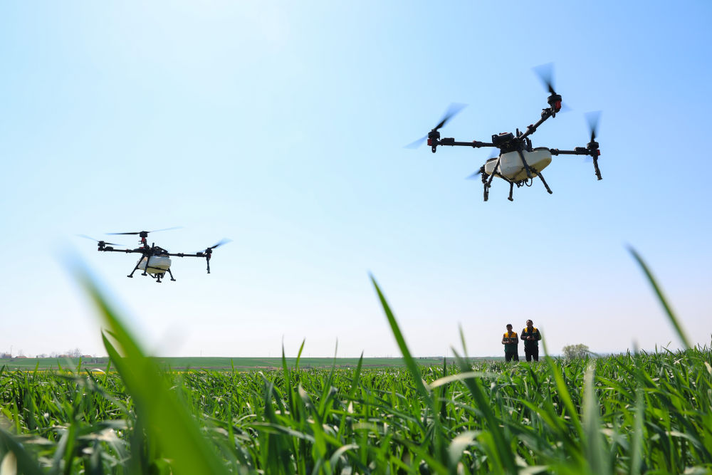 2025年3月20日,在湖北省棗陽市七方鎮(zhèn)大房村麥田里,棗陽市順輝農(nóng)機專業(yè)合作社技術人員操作無人機進行植保作業(yè)。新華社發(fā)(楊東攝)