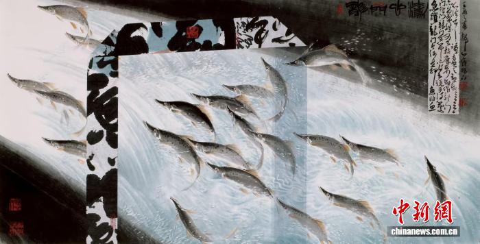 圖為林章湖畫作《魚躍龍門》。 (受訪者供圖)