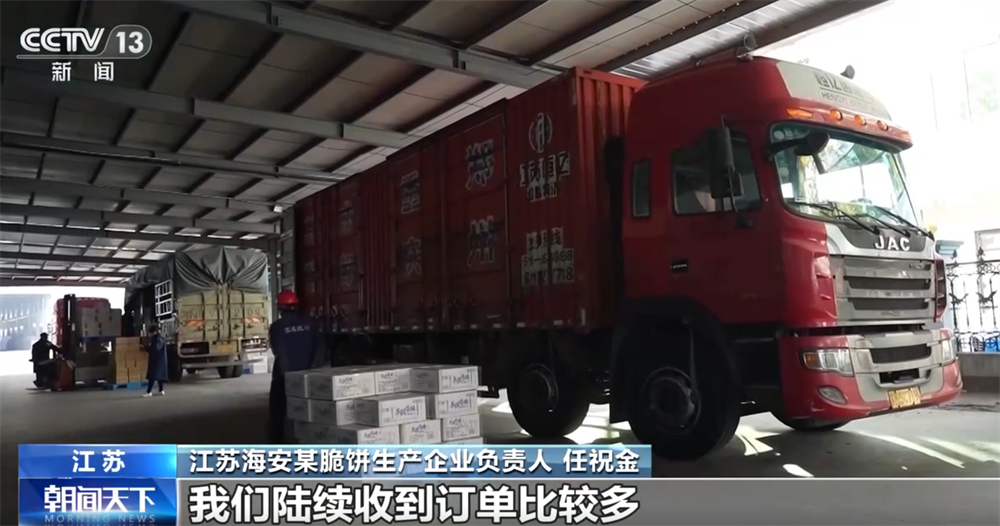 江蘇海安某脆餅生產(chǎn)企業(yè)負責人 任祝金:我們陸續(xù)收到訂單比較多,要忙到臘月十五左右。