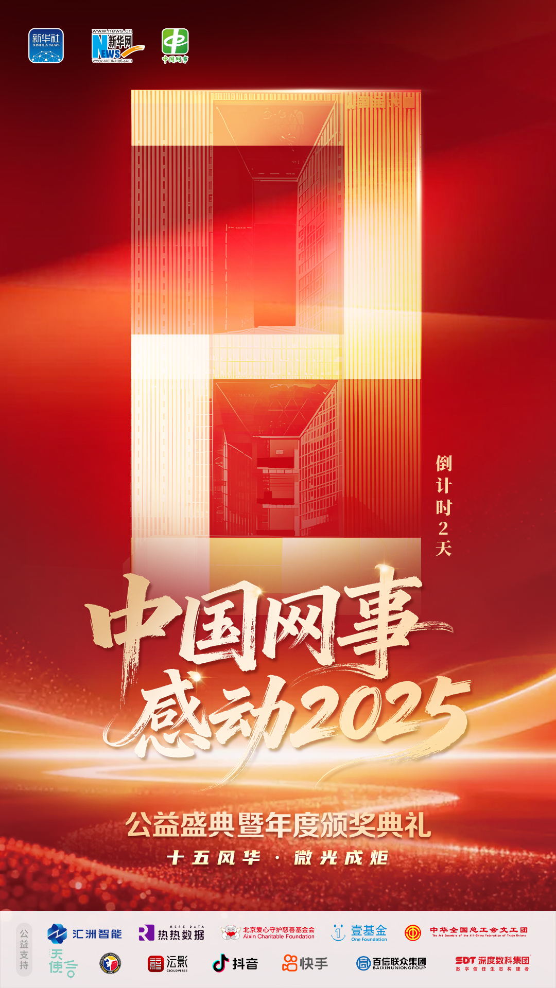 十五風(fēng)華,微光成炬?!爸袊W(wǎng)事·感動2025”公益盛典暨年度頒獎典禮將于2026年1月28日在北京國家金融信息大廈溫情啟幕,屆時將揭曉“中國網(wǎng)事·感動2025”十大年度網(wǎng)絡(luò)人物。
