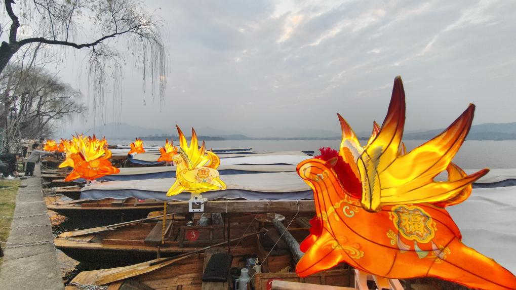 暖黃的馬燈光暈隨水波蕩漾,傳統(tǒng)手劃船裝點以吉祥馬燈,燈影與湖光相映……當?shù)靥匾鉃橛有麓捍蛟斓摹榜R燈福氣船”全新升級亮相,為冬日西湖夜游增添一抹溫馨的年節(jié)色彩。首批登船的游客厲增業(yè)欣喜地說:“搭上‘福氣船’,馬年肯定‘馬上好運’!”