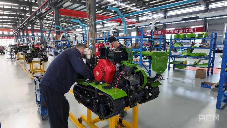 達州丘陵山區(qū)現(xiàn)代農(nóng)林裝備專業(yè)園區(qū)的生產(chǎn)線上,工人們正在組裝農(nóng)機裝備(央廣網(wǎng)記者 昌思榮 攝)