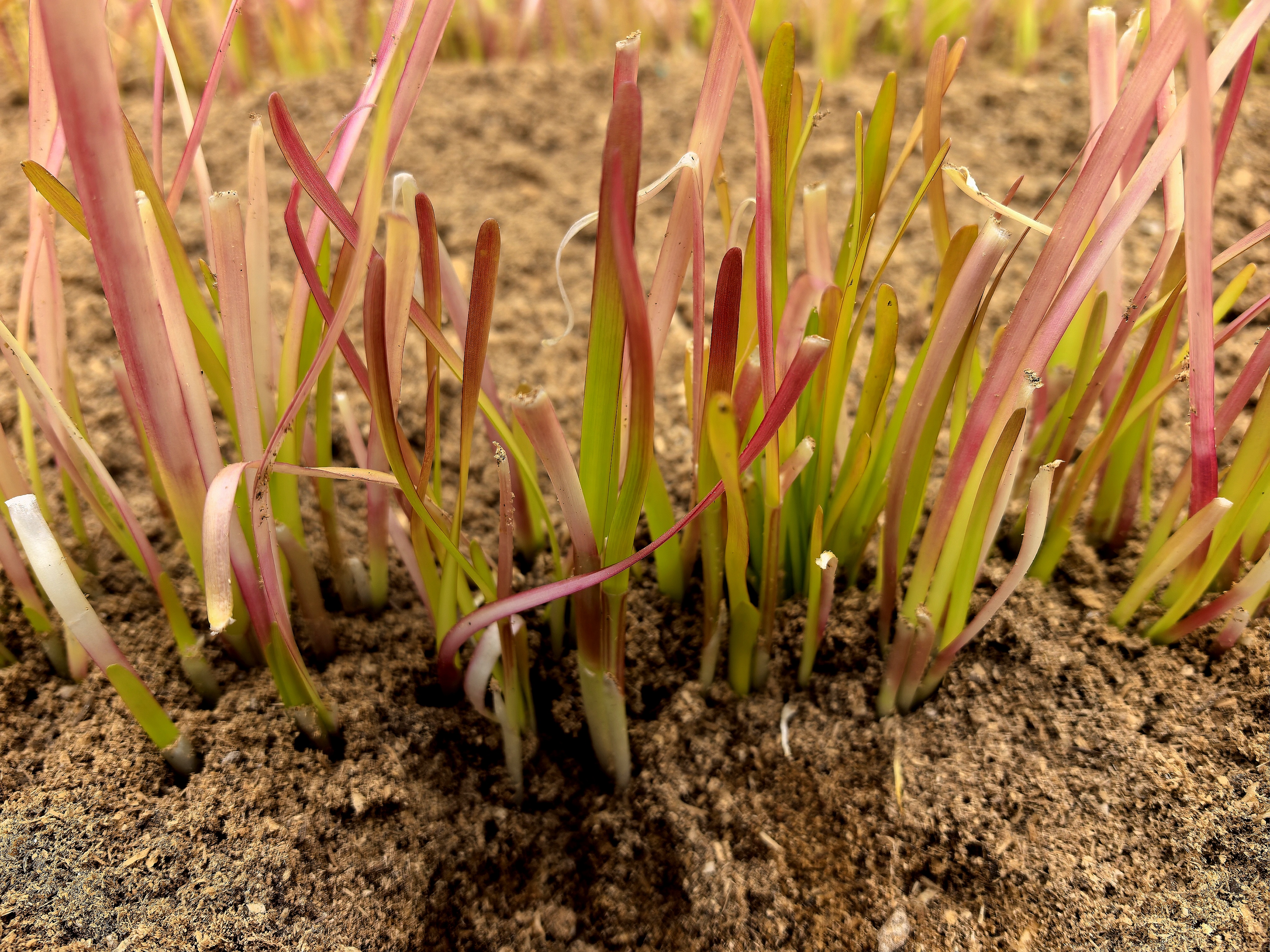 這樣的顏色并非品種天生,而是產(chǎn)于一套復(fù)雜細致的栽培技藝。在冬季,用特殊的基質(zhì)層層覆蓋韭菜地,精細調(diào)控掀蓋的時間、厚度來控制溫度和光照條件,使其在不同植株部位呈現(xiàn)出豐富的色彩。