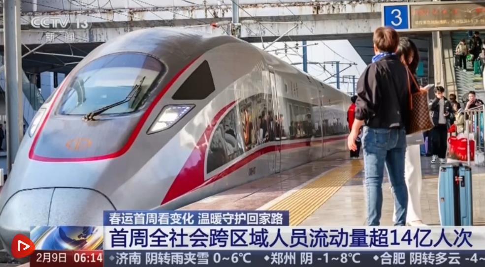 2026年春運(yùn)2月2日拉開帷幕,到2月9日是第八天。據(jù)此前綜合研判的數(shù)據(jù),在今年春運(yùn)40天的時(shí)間里,全社會(huì)跨區(qū)域人員流動(dòng)量將會(huì)達(dá)到95億人次,預(yù)計(jì)創(chuàng)歷史新高。數(shù)據(jù)顯示,春運(yùn)首周,預(yù)計(jì)全社會(huì)跨區(qū)域人員流動(dòng)量累計(jì)超14億人次,日均超2億人次,比去年同期增長2%。交通運(yùn)輸部預(yù)計(jì),2月14日前后將達(dá)到春節(jié)前客流峰值。