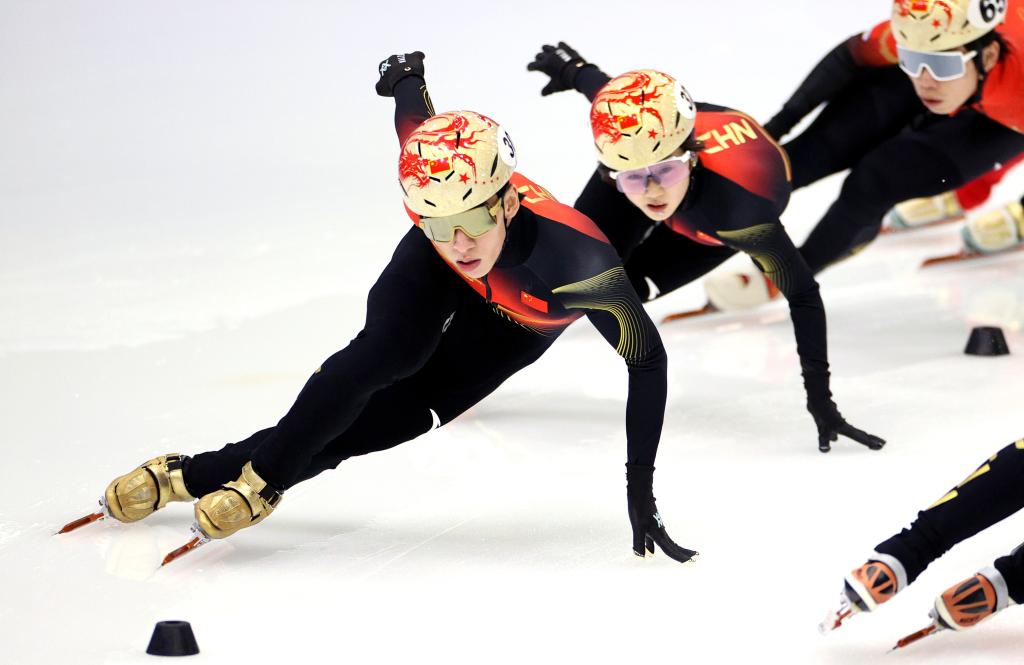 1月29日,中國短道速滑隊(duì)選手在訓(xùn)練中。新華社記者 張晨 攝
