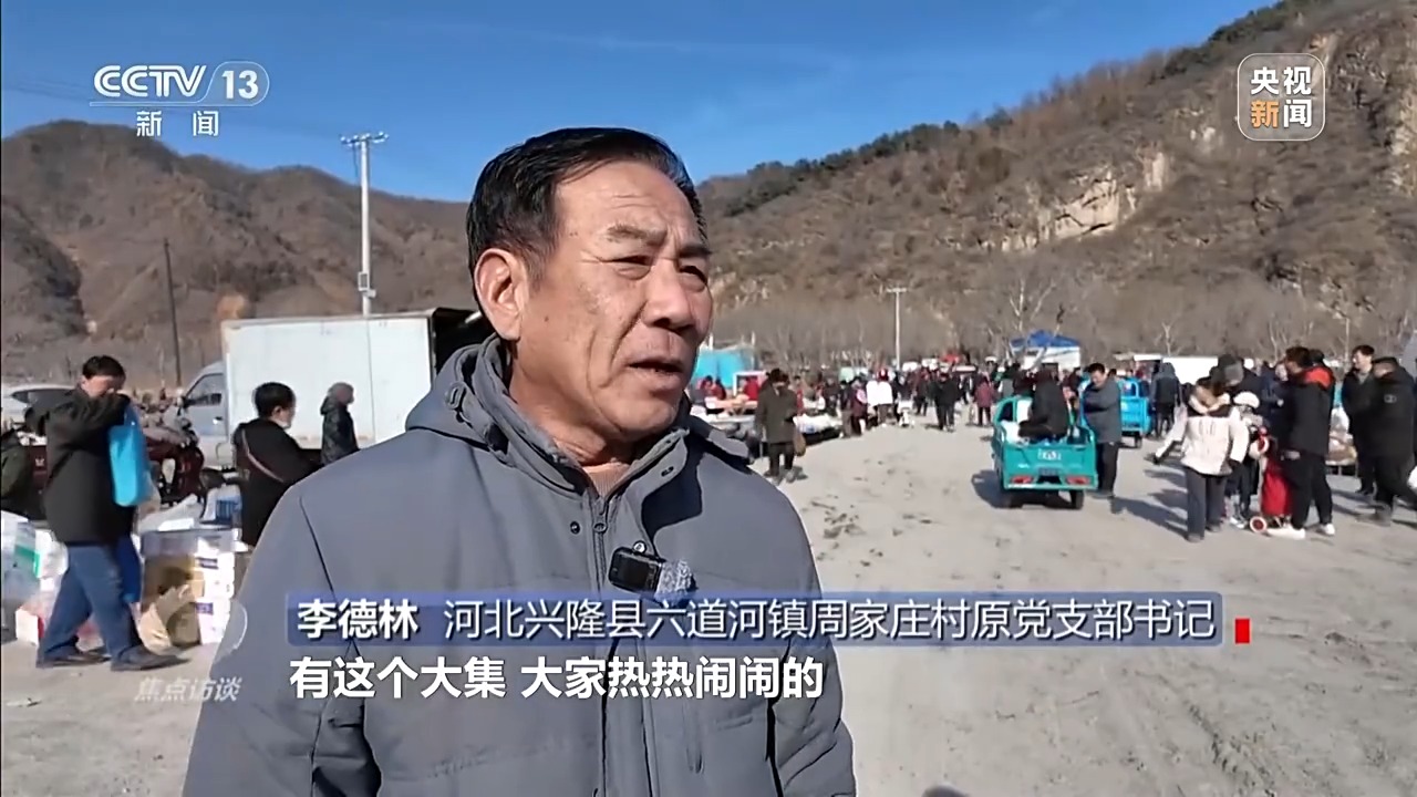 河北興隆縣六道河鎮(zhèn)周家莊村原黨支部書記 李德林:有這個大集,大家熱熱鬧鬧的,相互在這兒能見個面。農村的大集和廟會就起這個作用,大家能見個面,買點東西也方便,人氣就上來了。