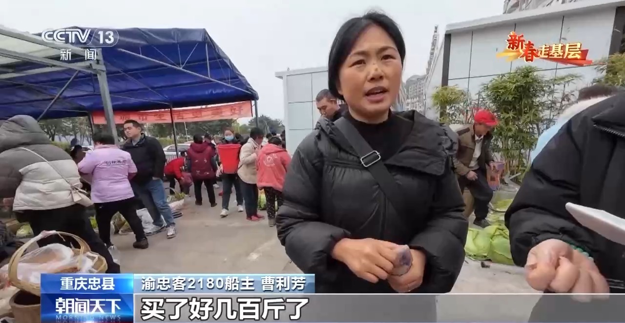 “渝忠客2180”船主 曹利芳:買(mǎi)了好多了,幫著買(mǎi)了好幾百斤了,好多網(wǎng)友他們想要吃這邊的農(nóng)家菜,所以叫我們幫他買(mǎi)了然后寄過(guò)去。