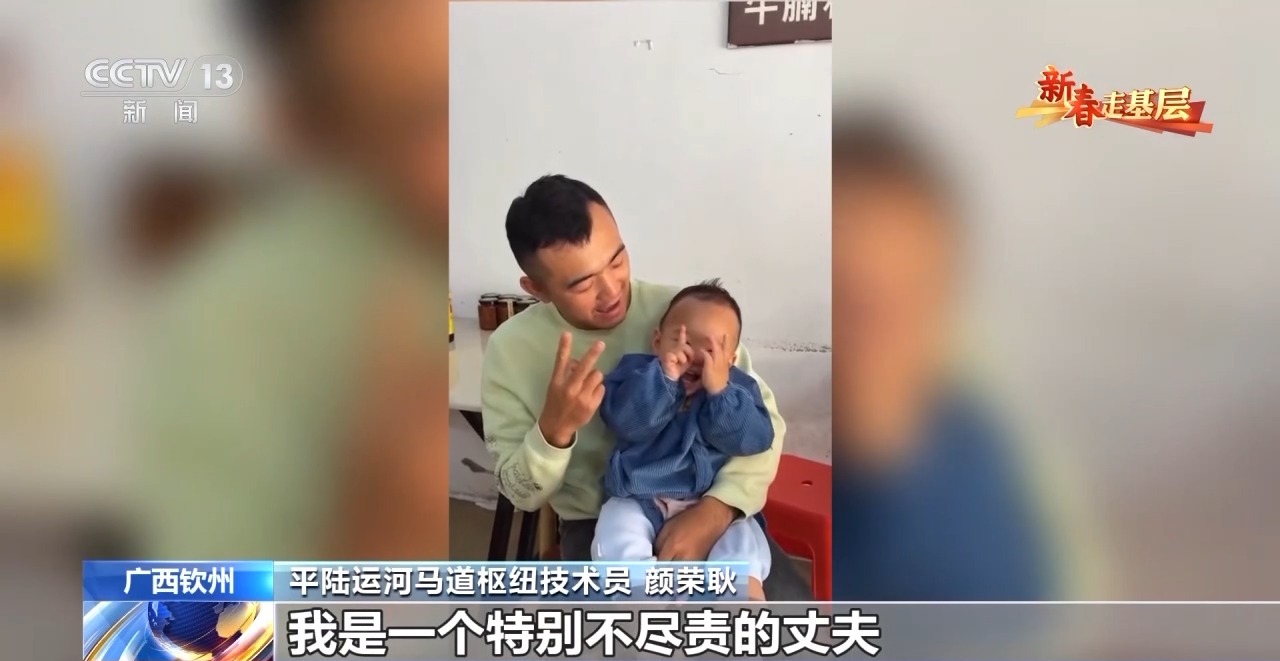 平陸運河馬道樞紐技術員 顏榮耿:我愛人跟我說,小孩做夢都夢到說喊爸爸,喊爸爸。小孩快兩歲,然后可能在我抱的時間里,可能都不到3個月。我是一個特別不盡責的丈夫,等有空以后,還是帶著大寶和小寶,來看一下老爸在這四年的付出。