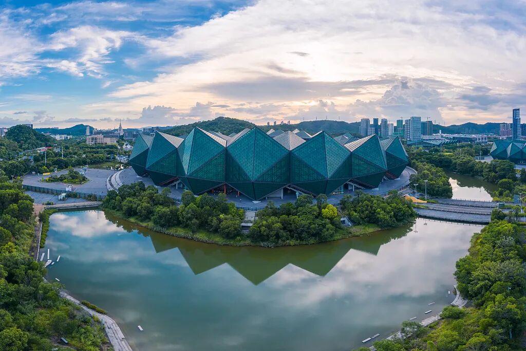 作為深圳文體地標(biāo)——深圳大運(yùn)中心體育館極具現(xiàn)代建筑美學(xué),成為電影“城市森林”畫面的重要底色。這座以“水晶石”為造型的建筑,線條流暢、質(zhì)感硬核。