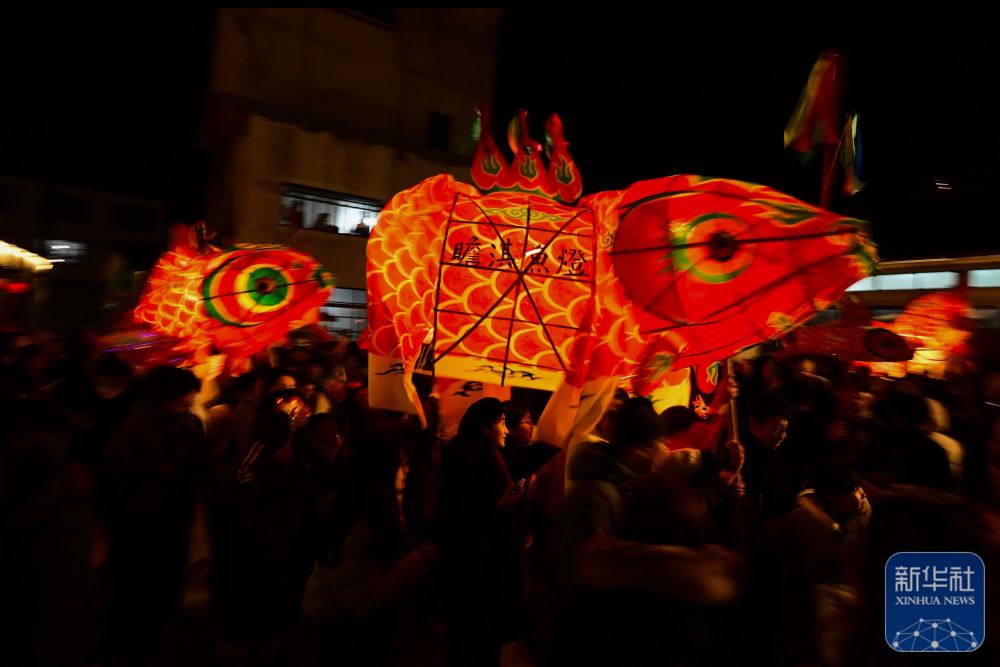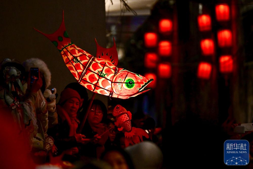魚(yú)燈隊(duì)伍踏鼓而行