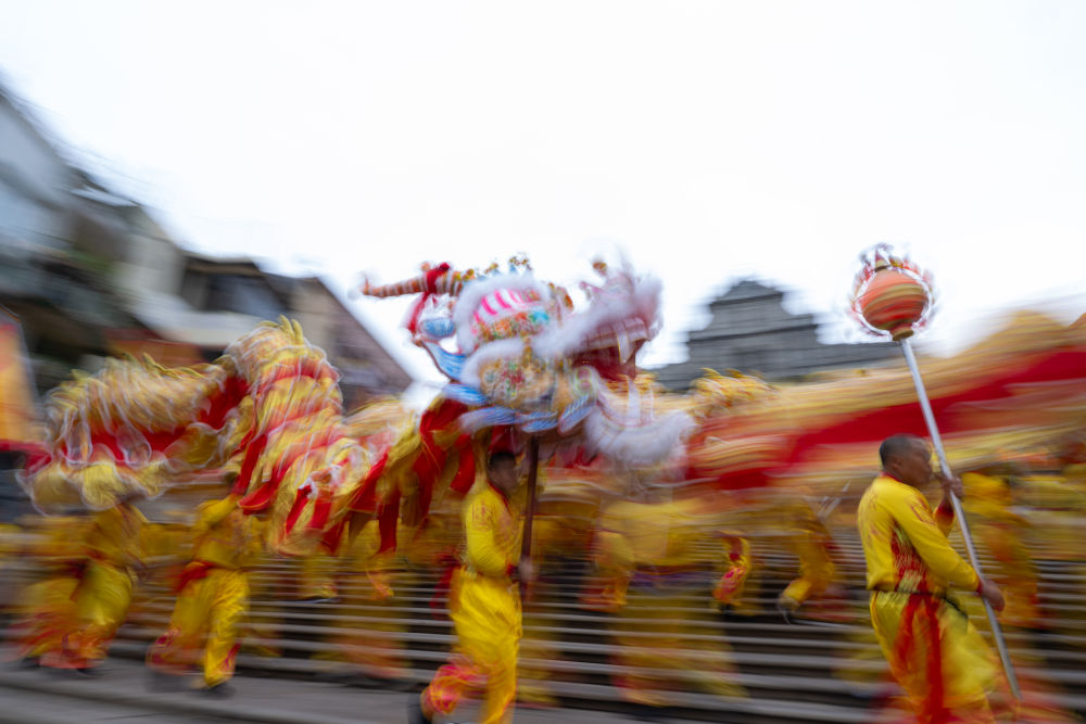 廣東中山游客王世杰一早便在大三巴牌坊前等著金龍?!盎洶奈幕嘟嗤?,都講粵語、吃粵菜,都喜歡舞龍舞獅?!彼f,舞龍醒獅同臺獻(xiàn)瑞的傳統(tǒng),把節(jié)日喜慶氛圍“推向更高”。