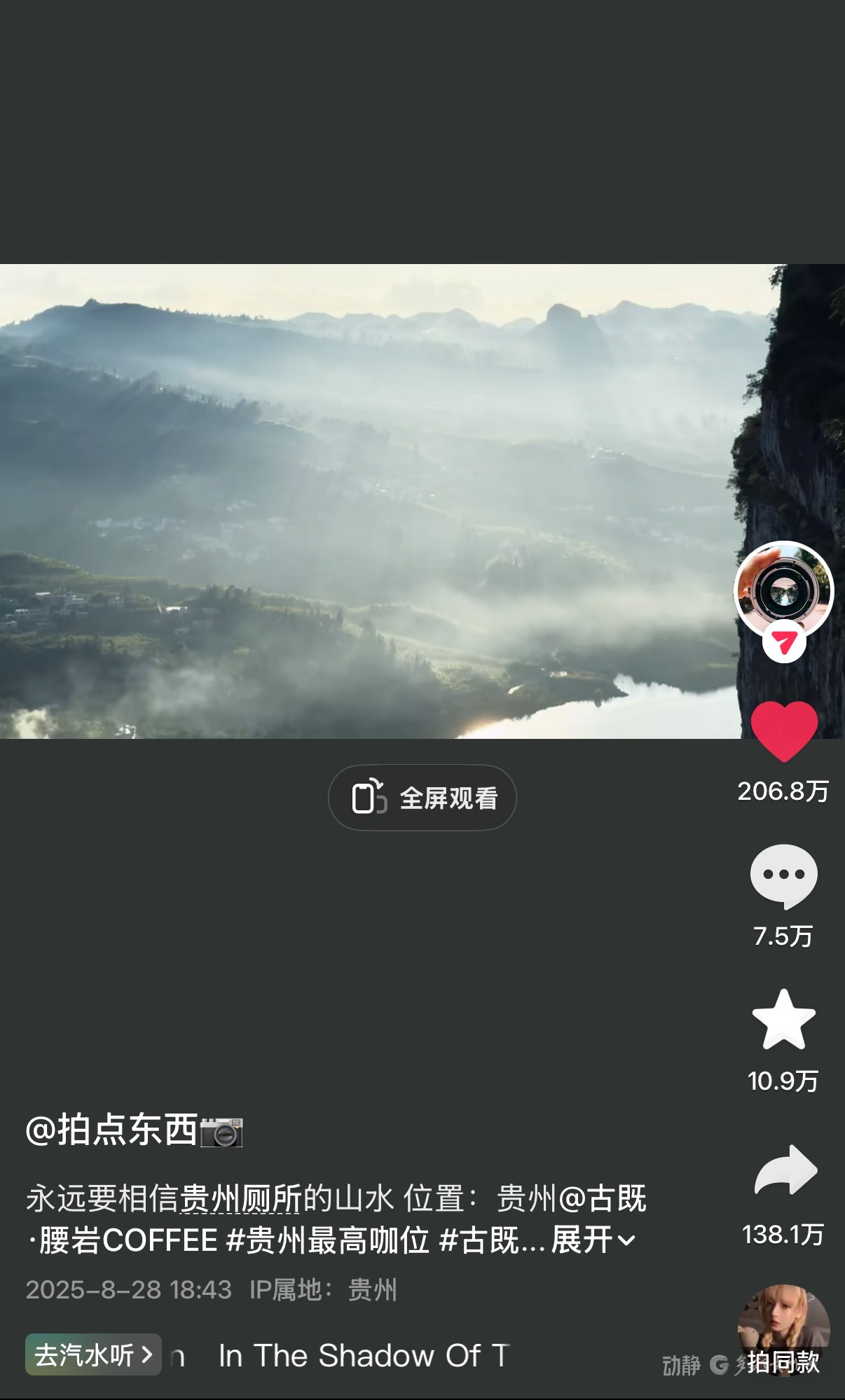 開業(yè)即爆火。一條雨后丁達(dá)爾效應(yīng)的短視頻,播放量4000多萬、點(diǎn)贊200萬,懸崖咖啡徹底出圈?!拔覀兂掷m(xù)打造人工雪景、新年主題持續(xù)上新,游客遍布全國,甚至還有港澳臺及國外來客。國慶期間單日營收最高突破2萬元。”咖啡廳負(fù)責(zé)人鄧丁告訴記者。