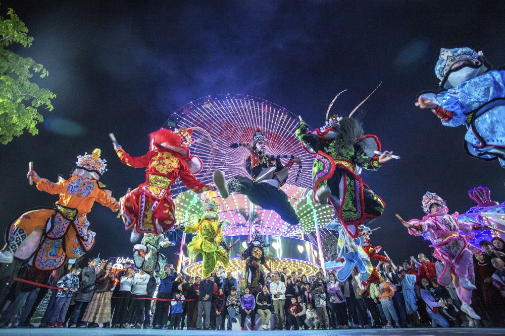 2026年2月19日,英歌舞隊(duì)在廣東省佛山市高明區(qū)濱荷Park生態(tài)文創(chuàng)園街頭巡游表演。