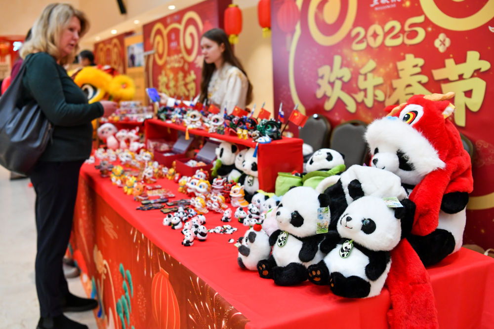 2025年1月28日在俄羅斯莫斯科舉行的新春廟會(huì)活動(dòng)上拍攝的文創(chuàng)產(chǎn)品。