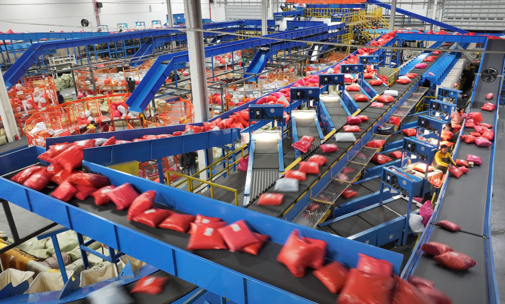 在江蘇南通一家國際物流園分揀中心,工作人員在分揀貨物(2023年12月20日攝,無人機(jī)照片)。“十四五”期間,面對(duì)地緣政治風(fēng)險(xiǎn)和貿(mào)易壁壘,我國以跨境電商、保稅維修、市場(chǎng)采購等為代表的新業(yè)態(tài)新模式助力各國消費(fèi)者、生產(chǎn)者“買全球、賣全球”,成為穩(wěn)外貿(mào)的重要引擎。