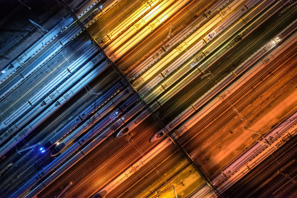 動(dòng)車組列車停靠在貴陽北動(dòng)車所內(nèi)(2023年1月6日攝,無人機(jī)照片)?!笆奈濉逼陂g,我國建成世界規(guī)模最大、先進(jìn)發(fā)達(dá)的高速鐵路網(wǎng)。