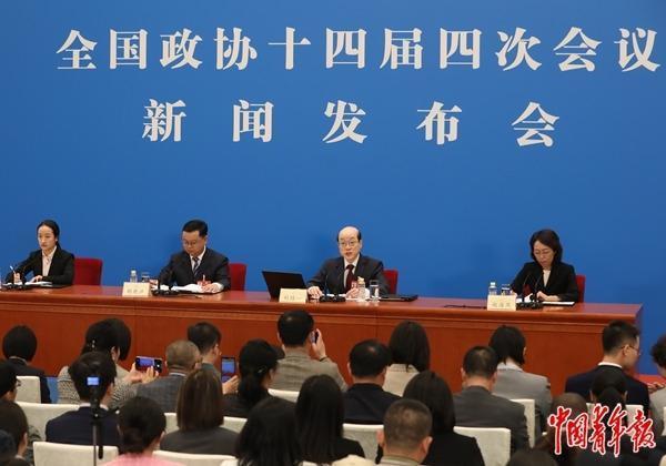 3月3日,北京,全國(guó)政協(xié)十四屆四次會(huì)議新聞發(fā)布會(huì)在人民大會(huì)堂一層新聞發(fā)布廳舉行。大會(huì)新聞發(fā)言人劉結(jié)一(右二)向中外媒體介紹本次大會(huì)有關(guān)情況并回答記者提問。中青報(bào)·中青網(wǎng)記者 陳劍/攝
