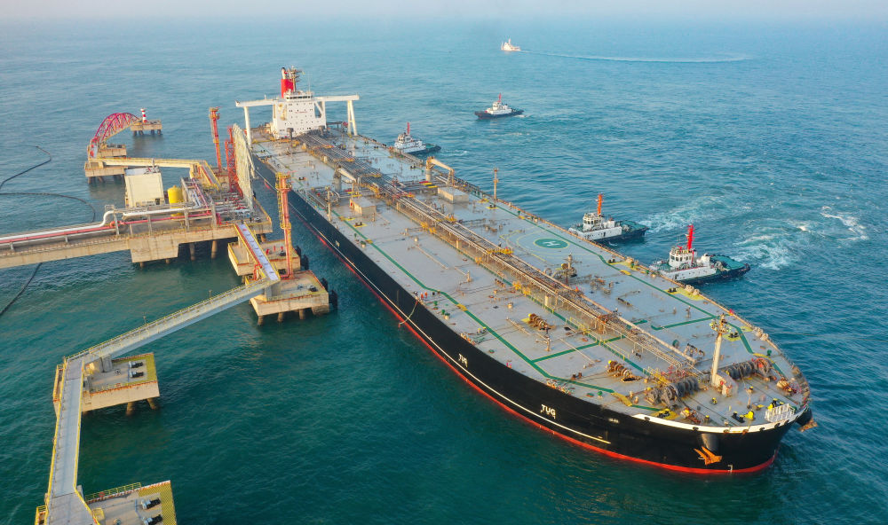 2025年12月18日,一艘裝載著石化原輔料的外籍船舶泊入位于海南省儋州市的國投洋浦油儲碼頭30萬噸級原油泊位(無人機照片)。自2025年12月18日起,海南自由貿(mào)易港正式啟動全島封關(guān)。新華社記者 郭程 攝