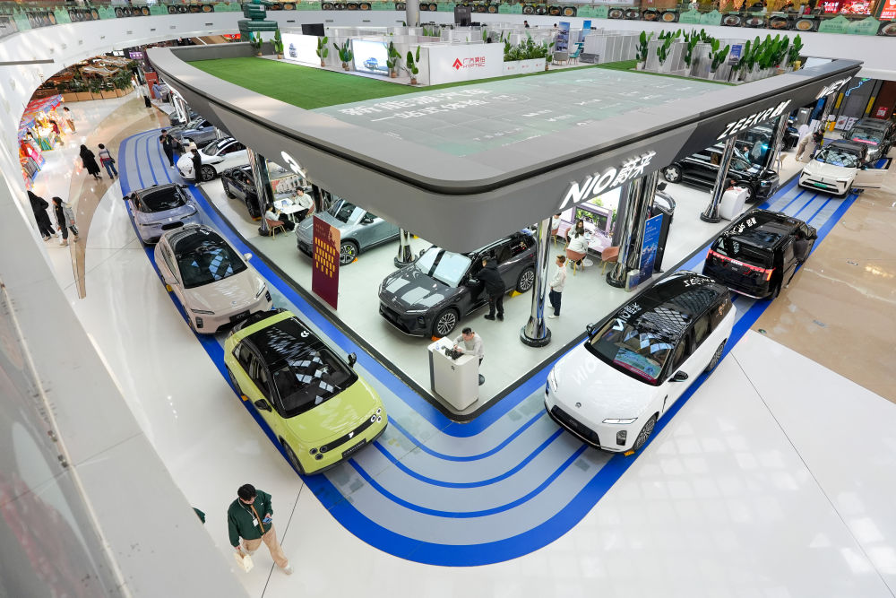在北京市朝陽(yáng)區(qū)一個(gè)商場(chǎng)內(nèi),市民在了解新能源汽車(2026年2月11日攝)。新華社記者鞠煥宗攝