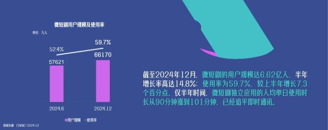 據《中國網絡視聽發(fā)展研究報告(2025)》顯示,截至2024年12月,微短劇用戶規(guī)模達6.62億人,使用率為59.7%,市場規(guī)模突破500億元,2025年預計已破千億元。微短劇的爆發(fā)式增長背后,關于內容審核、未成年人保護、精品化發(fā)展的討論,正在兩會會場內引發(fā)深度思考。