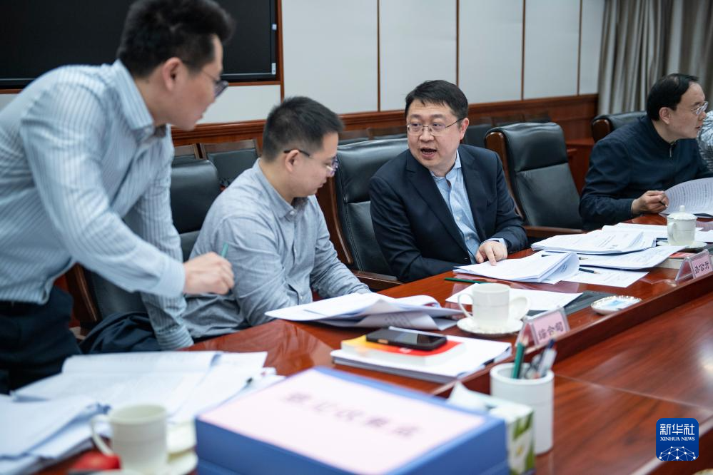 3月7日,財(cái)政部工作人員根據(jù)代表意見建議討論修改2026年預(yù)算報(bào)告。新華社記者 孫瑞博 攝