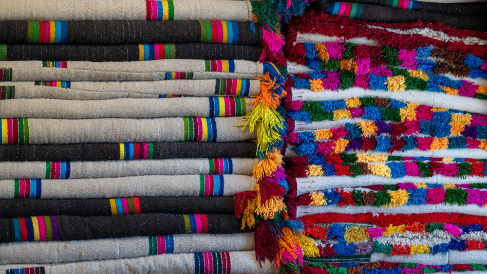 3月25日,西藏日喀則市崗巴縣直克鄉(xiāng)乃村順心合作里整齊擺放的羊毛被。新華網(wǎng) 旦增努布 攝