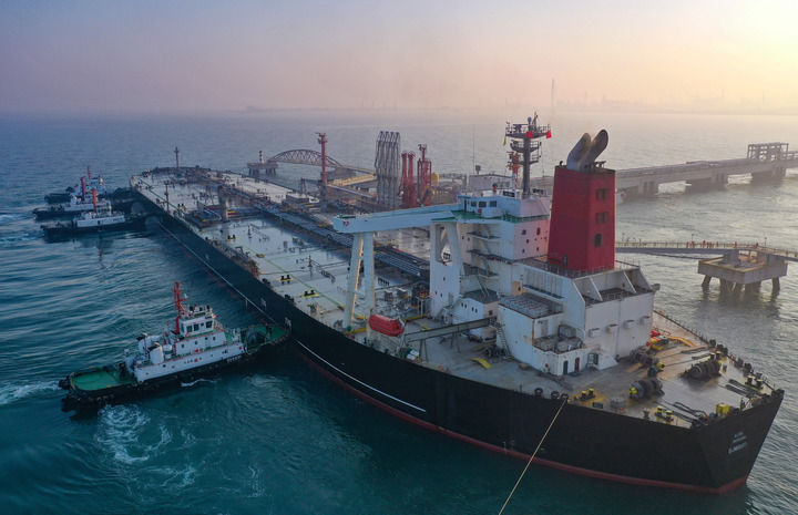 2025年12月18日,一艘裝載著17.9萬噸石化原輔料的船舶泊入國(guó)投洋浦油儲(chǔ)碼頭30萬噸級(jí)原油泊位(無人機(jī)照片)。這是海南自由貿(mào)易港正式啟動(dòng)全島封關(guān)后洋浦港口岸第一批通關(guān)的“零關(guān)稅”石化原輔料。