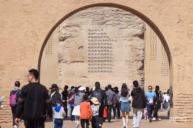 “只有河南·戲劇幻城”內(nèi)的夯土墻高約15米,墻體刻有河南各地地名(央廣網(wǎng)發(fā) 主辦方供圖)