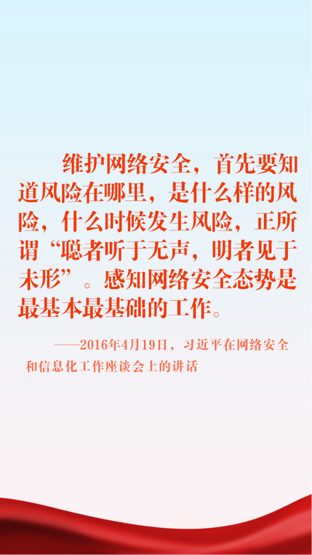 習(xí)近平總書(shū)記強(qiáng)調(diào),在信息時(shí)代,網(wǎng)絡(luò)安全對(duì)國(guó)家安全牽一發(fā)而動(dòng)全身,同許多其他方面的安全都有著密切關(guān)系。