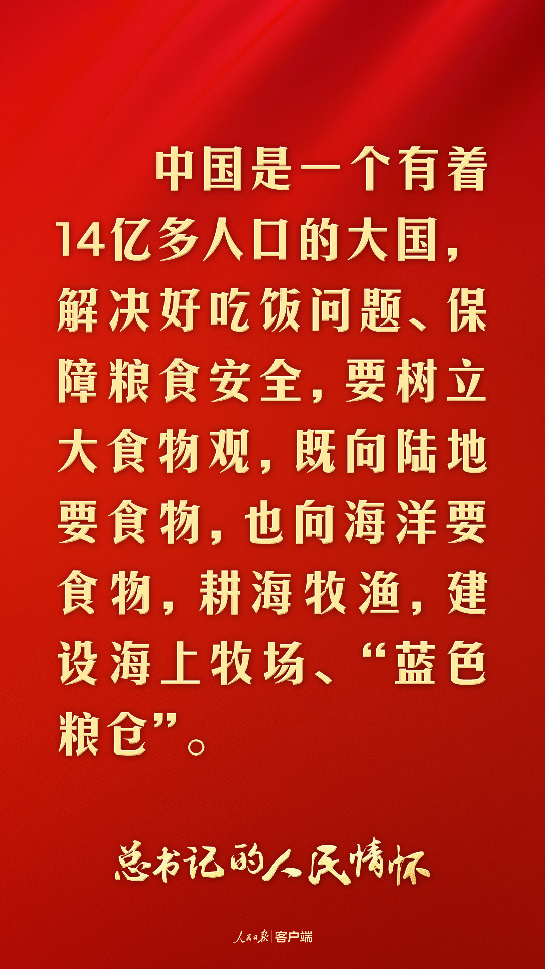 2023年4月,習(xí)近平總書記在廣東考察時指出:“解決好吃飯問題、保障糧食安全,要樹立大食物觀,既向陸地要食物,也向海洋要食物,耕海牧漁,建設(shè)海上牧場、‘藍色糧倉’?!?/p>