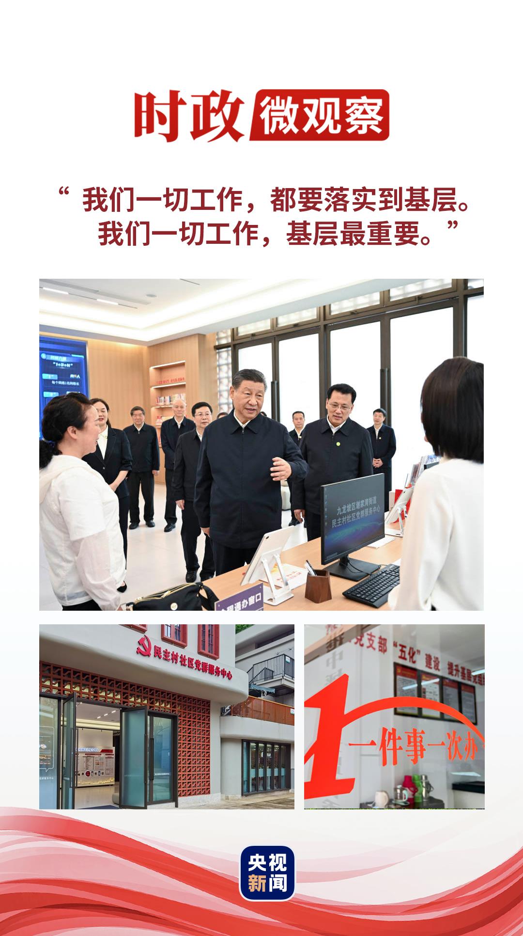 4月22日,正在重慶考察的習近平總書記來到九龍坡區(qū)謝家灣街道民主村社區(qū),走進社區(qū)黨群服務中心,向社區(qū)干部詢問這里都開展哪些便民服務、社區(qū)干部待遇怎么樣、平時工作忙不忙等,詳細了解近年來社區(qū)減負效果。