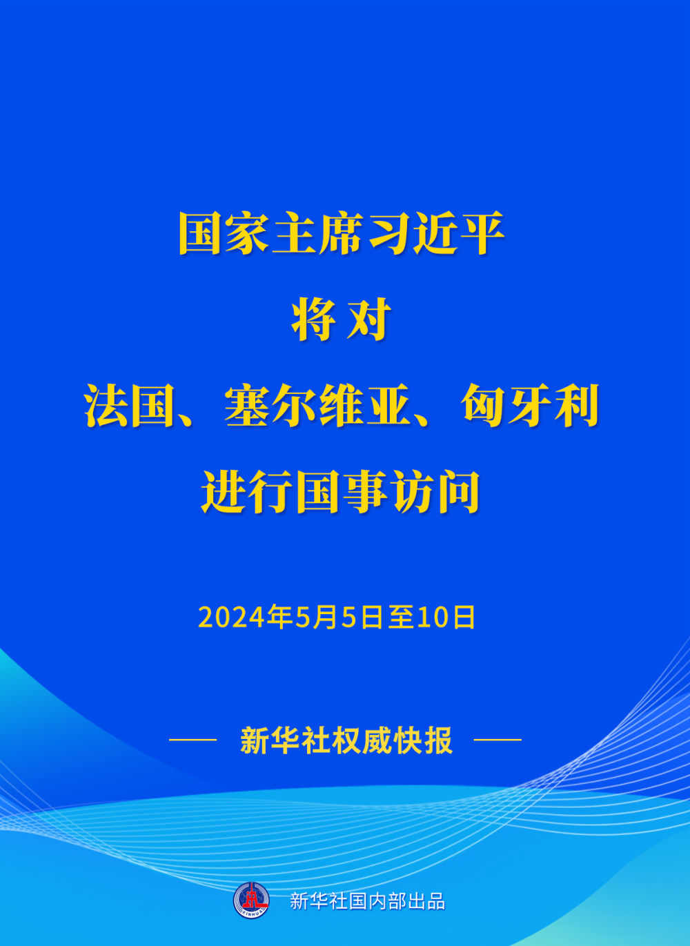 外交部發(fā)言人華春瑩4月29日宣布:應法蘭西共和國總統(tǒng)馬克龍、塞爾維亞共和國總統(tǒng)武契奇、匈牙利總統(tǒng)舒尤克和總理歐爾班邀請,國家主席習近平將于5月5日至10日對上述三國進行國事訪問。