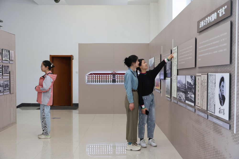 學(xué)生參觀(guān)北京大學(xué)“大講堂之路”展覽(2024年3月16日攝)。新華社記者 王翔 攝