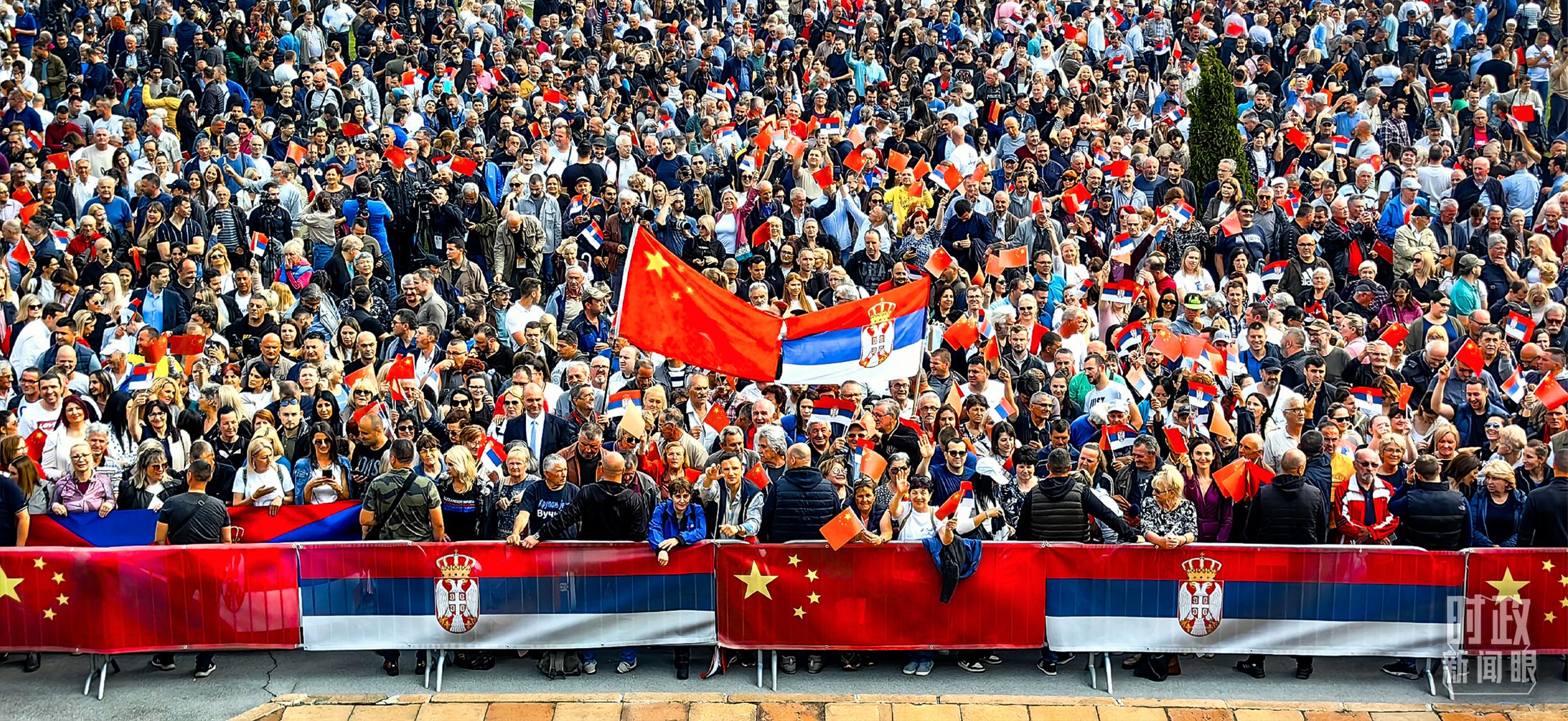 當天的歡迎儀式結(jié)束后,武契奇總統(tǒng)陪同習主席來到政府大廈平臺。大廈廣場上,一萬五千名塞爾維亞民眾揮舞中塞兩國國旗,對習主席表示最熱烈的歡迎。