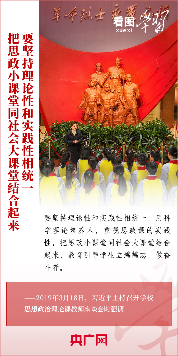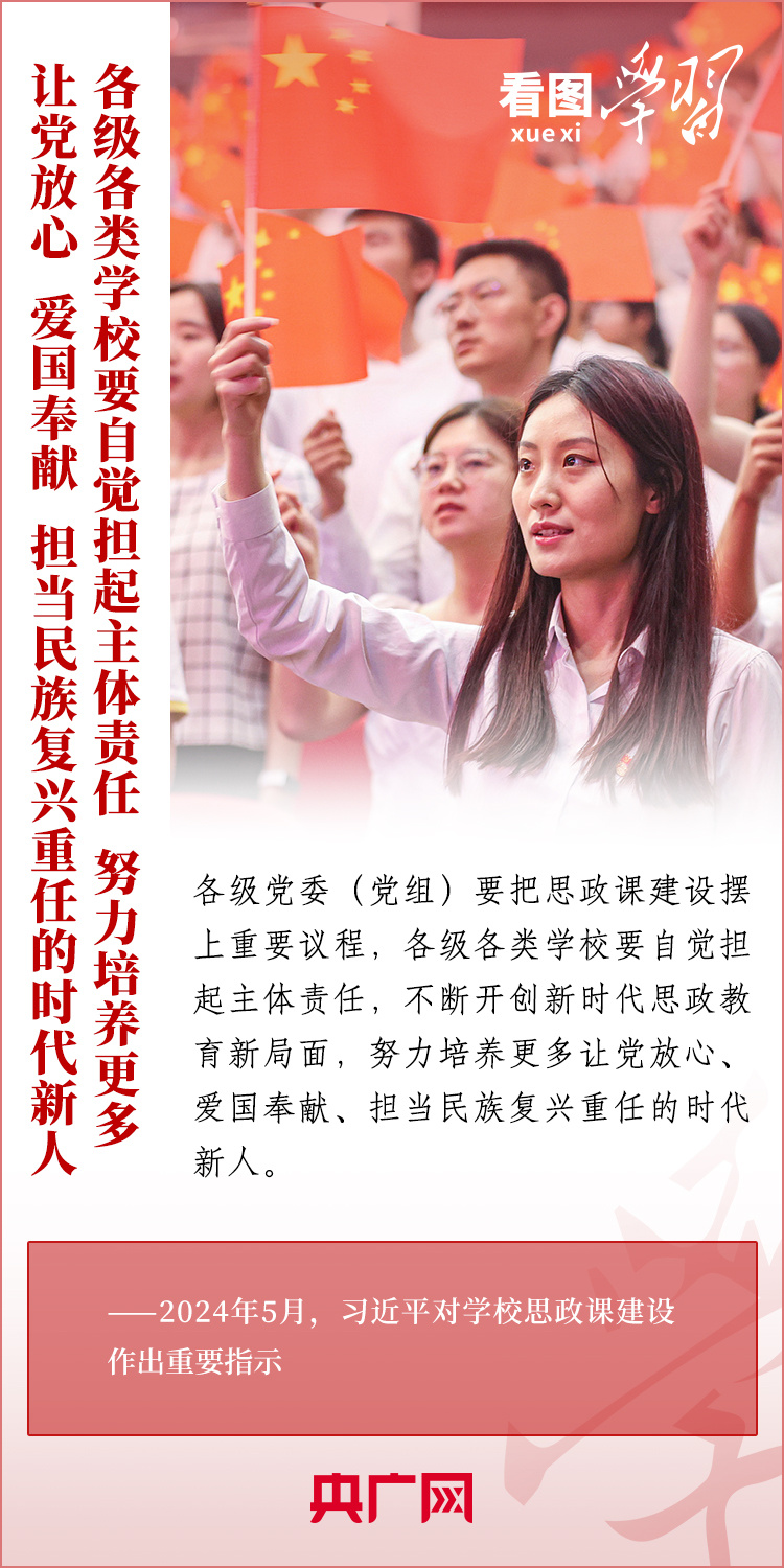 近日,習(xí)近平總書記對(duì)學(xué)校思政課建設(shè)作出重要指示??倳洀?qiáng)調(diào),新時(shí)代新征程上,思政課建設(shè)面臨新形勢(shì)新任務(wù),必須有新氣象新作為。各級(jí)黨委(黨組)要把思政課建設(shè)擺上重要議程,各級(jí)各類學(xué)校要自覺(jué)擔(dān)起主體責(zé)任,不斷開(kāi)創(chuàng)新時(shí)代思政教育新局面,努力培養(yǎng)更多讓黨放心、愛(ài)國(guó)奉獻(xiàn)、擔(dān)當(dāng)民族復(fù)興重任的時(shí)代新人。一起來(lái)學(xué)習(xí)!