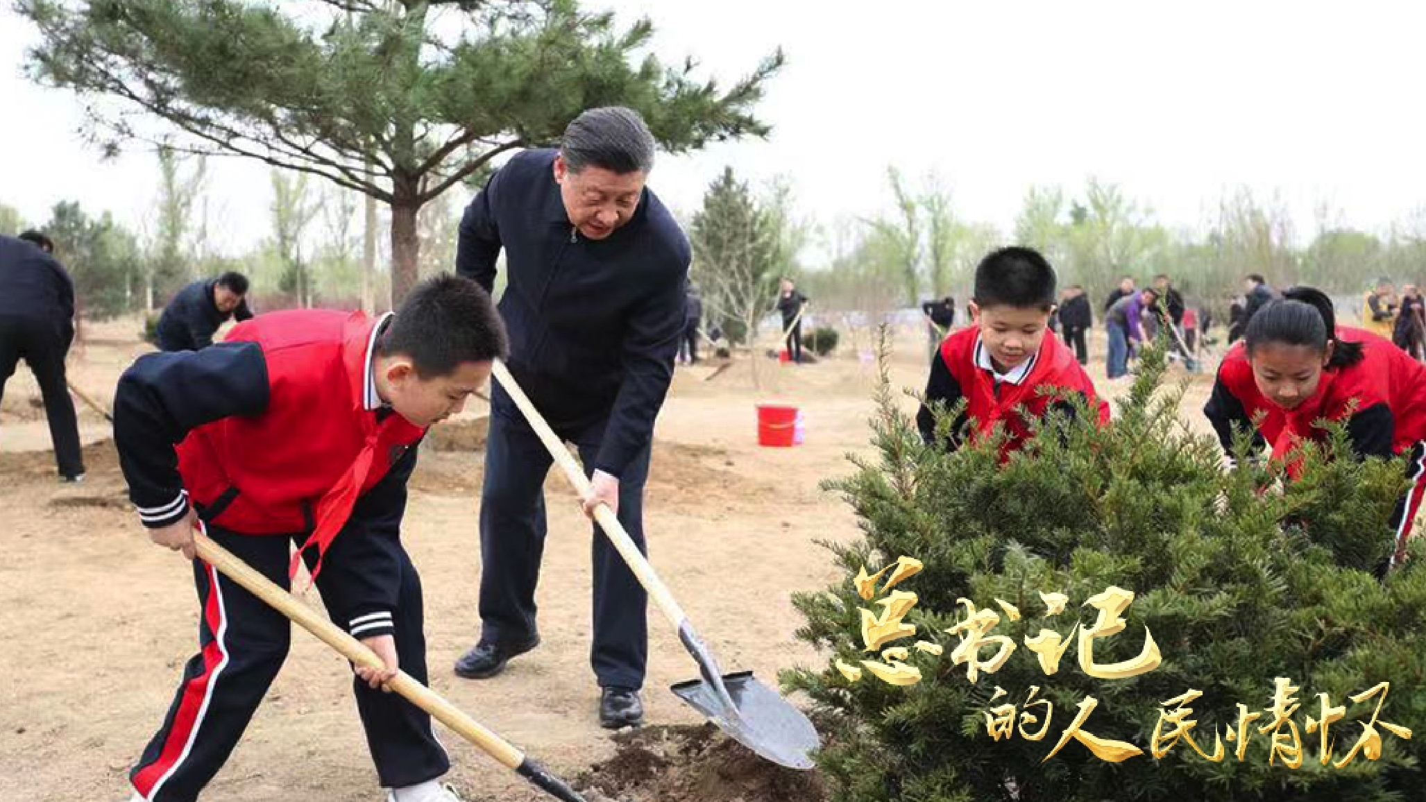 十年樹木,百年樹人。2023年4月4日,京郊大地,春雨飄飄。習近平總書記披上雨衣,拿起鐵鍬走向植樹地點。習近平總書記一邊勞動,一邊教孩子種樹的方法,并與孩子們聊起學習生活情況。習近平總書記強調,孩子教育,跟植樹一樣,一開始就要豎正,否則就會長歪。