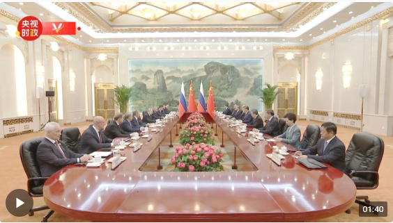 普京說:“尊敬的習(xí)近平主席,我親愛的老朋友,非常高興時(shí)隔半年再次來到友好、好客的中國并同您會面。俄中關(guān)系不是權(quán)宜之計(jì),不針對第三方,我們在國際事務(wù)中的合作,是當(dāng)今國際舞臺的主要穩(wěn)定因素之一。”