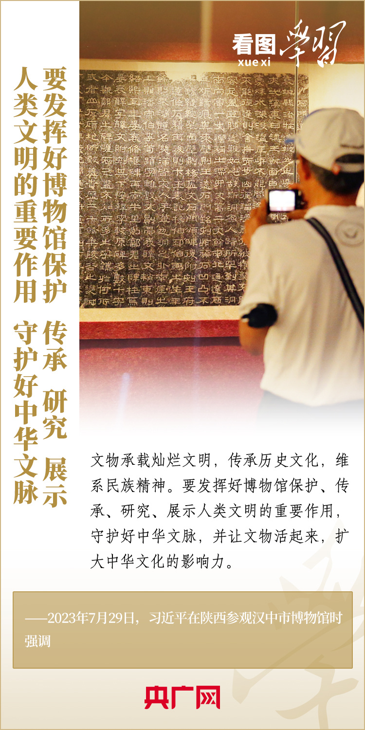 “一座博物館就是一所大學(xué)校”“博物館很重要,我從小就愛看博物館,小時(shí)候北京的博物館我差不多都看過了”“博物館建設(shè)要更完善、更成體系,同時(shí)發(fā)揮好博物館的教育功能”……在國內(nèi)考察中,習(xí)近平總書記曾經(jīng)多次走進(jìn)當(dāng)?shù)夭┪镳^,了解館藏文物的收藏、保護(hù)、研究情況,對(duì)博物館建設(shè)和利用作出重要指示。一起來學(xué)習(xí)!