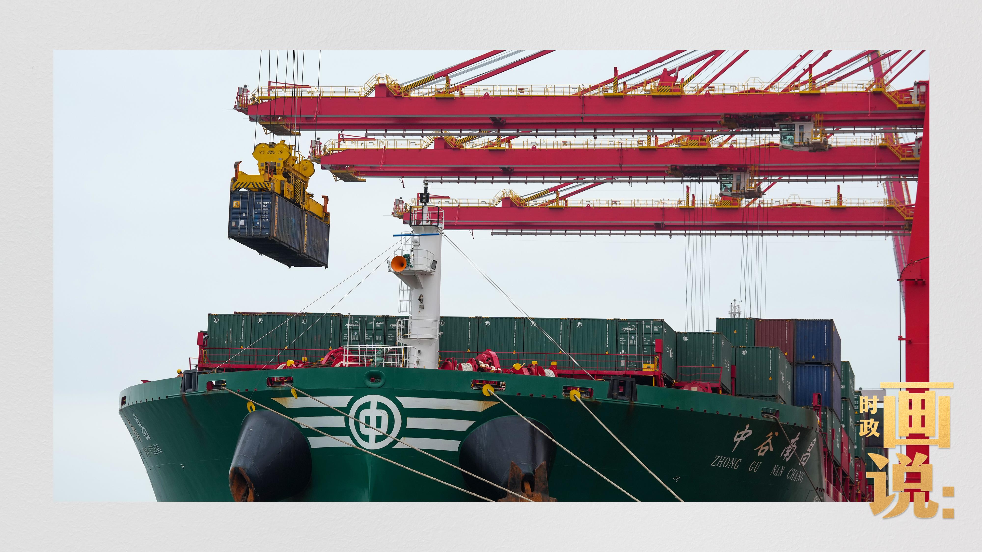 △山東港口集團(tuán)日照港石臼港區(qū)的全自動(dòng)化碼頭正在作業(yè)。近年來,日照港大力推動(dòng)港口智慧化、綠色化發(fā)展,建成全球首個(gè)順岸開放式全自動(dòng)化集裝箱碼頭。