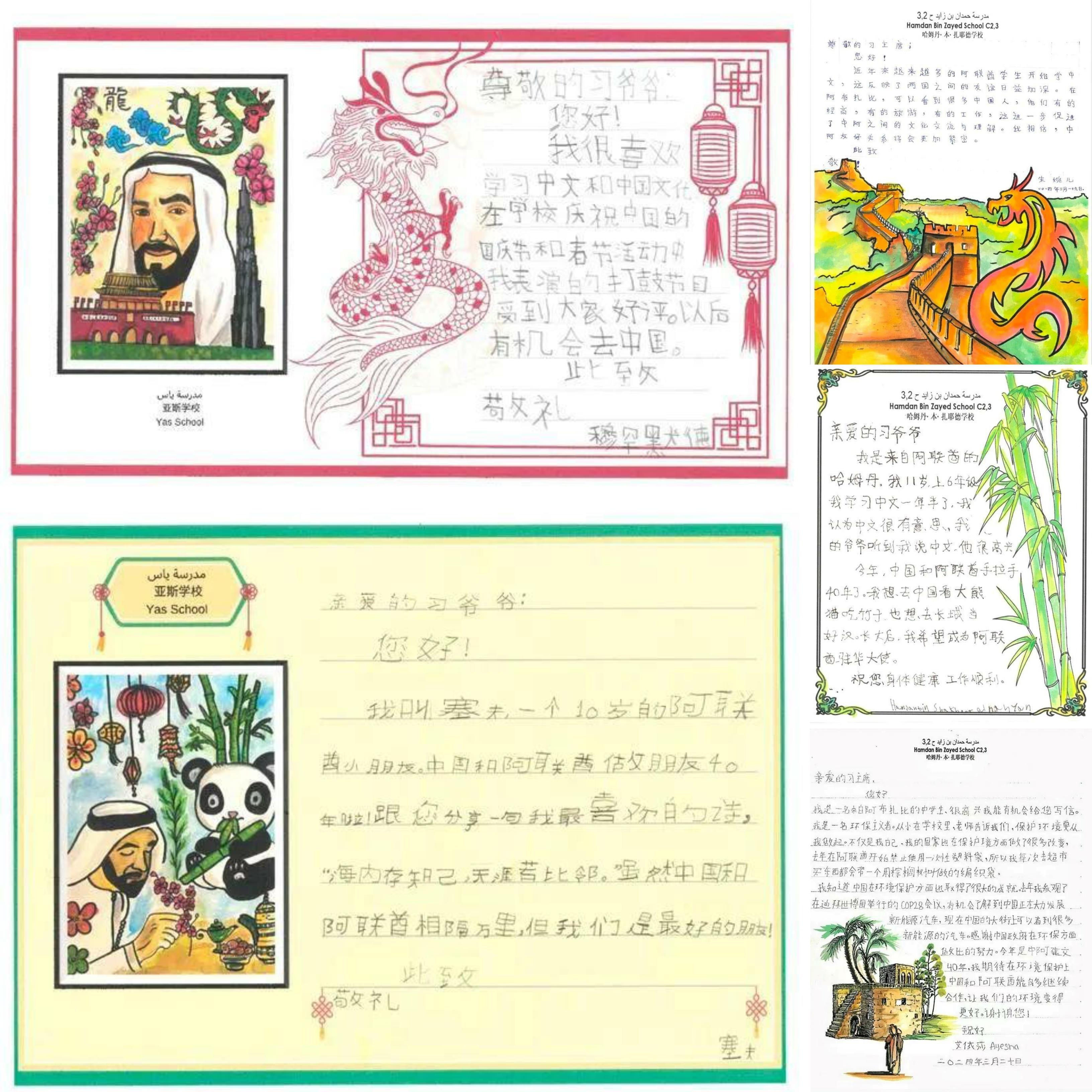 “我讀了你們每個人的信,從字里行間、畫里畫外感受到了大家對中國文化的熱愛,對兩國友好的期盼?!苯眨暯街飨诮o他們的復信中說,“5年前,我同穆罕默德總統(tǒng)共同啟動阿聯酋中文教學‘百校項目’,如今看到‘學中文’在阿聯酋已經成為一種新風尚,培養(yǎng)了一批像你們這樣的中阿交流小使者,我很欣慰?!?/p>