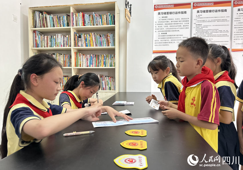 5月31日,南充市嘉陵區(qū)之江小學“美習銀行”,學生們在儲存“美習幣”。人民網(wǎng)記者 王波攝
