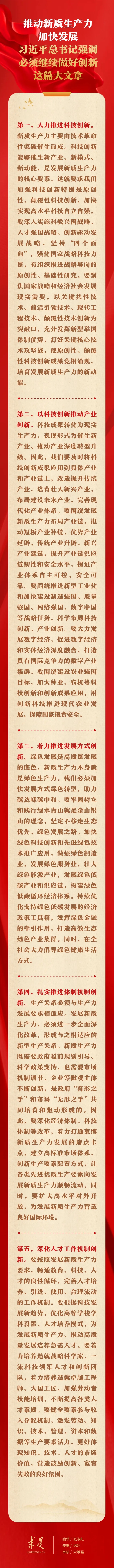 “新質生產力的顯著特點是創(chuàng)新,既包括技術和業(yè)態(tài)模式層面的創(chuàng)新,也包括管理和制度層面的創(chuàng)新。必須繼續(xù)做好創(chuàng)新這篇大文章,推動新質生產力加快發(fā)展。”